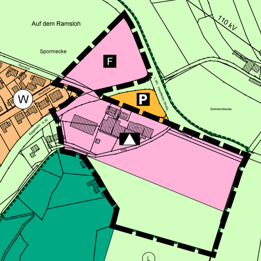 Im Auftrag der Gemeinde Schalksmühle haben wir eine Änderung des Flächennutzungsplans sowie den Bebauungsplan Nr. 31 erarbeitet, um die planungsrechtlichen Voraussetzungen für den Neubau eines modernen Feuerwehrgerätehauses für die Einheit Hülscheid zu schaffen. Das bestehende Gebäude entspricht nicht mehr den aktuellen Anforderungen des Arbeits- und Brandschutzes und lässt sich am derzeitigen Standort aufgrund der beengten Verhältnisse nicht erweitern. Der neue Standort befindet sich gegenüber des bisherigen Gerätehauses am nördlichen Rand der Ortslage Spormecke und ist verkehrlich ideal angebunden. Der Bebauungsplan sichert nicht nur die Funktionalität des zukünftigen Feuerwehrstandorts, sondern berücksichtigt auch Anforderungen an Umwelt- und Lärmschutz sowie eine nachhaltige Gestaltung. Besonderes Augenmerk lag auf der Vermeidung negativer Auswirkungen auf die angrenzende Wohnumgebung sowie den Freiraum. Eine schalltechnische Untersuchung sowie eine Artenschutzprüfung konnten sicherstellen, dass Mensch, Natur und Einsatzbetrieb im Einklang stehen.