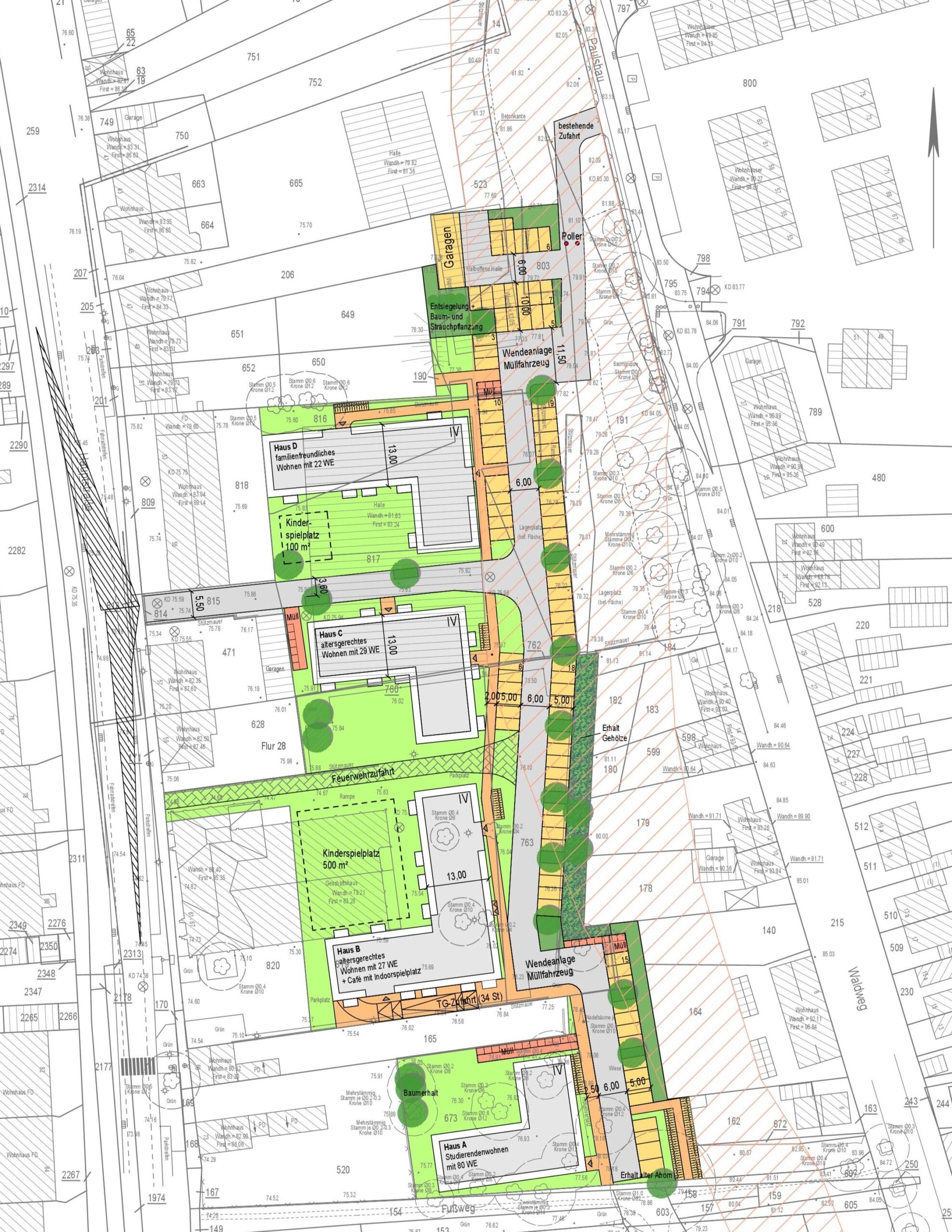 Basierend auf dem städtebaulichen Konzept haben wir den vorhabenbezogenen Bebauungsplan inklusive Vorhaben- und Erschließungsplan erarbeitet. Dabei sind wir neben der Erarbeitung der Bebauungsplanunterlagen auch mit dem Verfahrensmanagement während des gesamten Bebauungsplanverfahrens beauftragt.